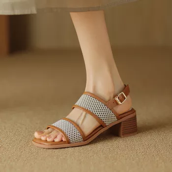 Elegant Genuine Leather Gladiator Sandals for Women – Chunky Heel Open Toe